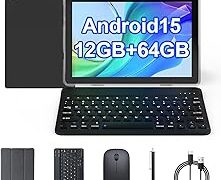 COOPERS Tablet Android 15, 10 inch Tablet 12GB RAM+64GB ROM Max 1TB, 1.8Ghz Quad-core Processor, 5G WiFi6, 6000mAh Battery Dual Camera, 2 in1 Tablets with Keyboard Case Mouse Stylus, Widevine L1 Black