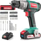 Taladro Atornillador Brushless 18V, HYCHIKA Taladro Percutor, Batería 2.0Ah con 60Nm, 53 Accesorios, 21+3 Ajustes, Cargador Rápido, 2 Velocidad, LED Para Hogar Bricolaje