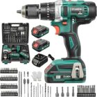 TEENO Martillo Perforador 21V, Taladro Destornillador Inalámbrico con 2 Baterías de 2000mAh, 40Nm, 18+3 Ajustes de Par, 20 Accesorios, 2 Velocidades, Luces LED, Apto para Uso Doméstico y Bricolaje