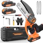 Mini motosierra de 6 pulgadas sin cable, 21V/2Ah batería para poda de ramas con 2 baterías, portátil eléctrico de mano pequeña motosierra con cerradura de seguridad, para cortar madera poda de árboles
