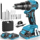LEEIKOO Taladro Percutor a Bateria 21V, Sin Escobillas Taladro Atornillador Bateria, Atornillador Electrico 45N.m con 2 x Baterías 2.0Ah, 20+3 Ajuste de Par, 14 Accesorios, 2 Velocidad Para Bricolaje