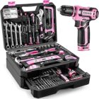 DEKO Caja Herramientas Completa Eléctricas 238 Piezas Rosa con 12V Taladro Eléctrico sin Cuerda, 10 mm Chuck sin Llave, Caja profesional de herramientas Domésticas de Bricolaje para Oficinas y Jardín