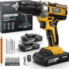 Sundpey Taladro Atornillador Bateria 21V – 45N.m Max Taladro Electrico con 2 Baterías de 2.0A.h, 18+1 Ajuste de Par, 2 Velocidad, Portabrocas de 10mm, LED Atornillador Electrico Para Hogar, Bricolaje