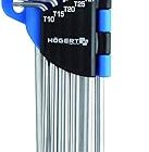 Högert Technik – Llave TORX I Juego de 9 piezas I Tamaños T10 a T50 I Hecho de acero al cromo vanadio I Resistente a la deformación y la abrasión I HT1W818 – Plata