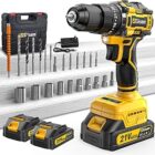 Taladro Percutor a Bateria 21V,2 x 2.0 AH Taladro Atornillador Bateria con,Atornillador Electrico 55Nm,23+3 Ajuste de Par,24 Accesorios,2 Velocidad, LED Luz Para Hogar,Bricolaje