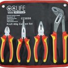 CCLIFE Juego de Alicates 4 Piezas,Set de herramientas con alicate universales-Tenaza Extensible de Pico loro-Alicates de Punta-Alicates de Corte Diagonal-Cromo Vanadio, Mango Softgrip