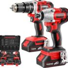 TEENO Taladro atornillador de impacto inalámbrico 100 Nm, 2 baterías de 2,0 A, 1 cargador, 25 accesorios, 2 herramientas