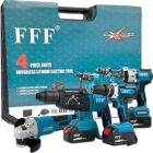 Kit de bricolaje profesional 4 en 1 con taladro y atornillador inalámbrico, taladro de percusión inalámbrico, amoladora angular inalámbrica, martillo perforador y taladro de percusión de 68 V