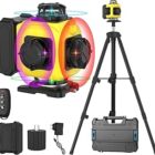 Nivel Laser Autonivelante 360°x 4, Nivel Láser con Trípode, Láser de 4 Colores, 16 Líneas, 2 x 360 Horizontal y 2 x 360 Verticales, Modo Pulso, Control Remoto, Base Giratoria y Ventanas