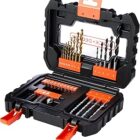 BLACK+DECKER Juego de 109 Piezas para Atornillar y Taladrar con Brocas de Titanio, Incluye Brocas para Metal, Mampostería y Madera, Maletín de Fácil Transporte – A7200-XJ