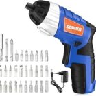 SORAKO 3.6V Destornillador Eléctrico, 6Nm con 30 Accesorios, Luz LED, 2 Direcciones de Rotación, Indicador de Batería y Cargador, Bricolaje Profesional