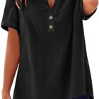 Camisetas Manga Corta Mujer de Algodón y Lino con Botones Primavera Verano Moda Color sólido Blusa Cuello en V Camiseta Casual Shirts Trabajo Fiesta Tops Elegante Cómoda Camisa Basica Top
