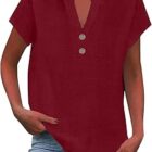 Camisetas Manga Corta Mujer de Algodón y Lino con Botones Primavera Verano Moda Color sólido Blusa Cuello en V Camiseta Casual Shirts Trabajo Fiesta Tops Elegante Cómoda Camisa Basica Top