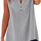 Camisa Sin Mangas Tallas Grandes Mujer de Algodón y Lino con Botones Primavera Verano Moda Color sólido Blusa Cuello en V Camiseta Elegante Cómoda Camisa Basica Top Casual Shirts