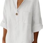 Camiseta Mujer Manga Larga Algodón y Lino Basicas Blusas Verano Botones Suelto Camiseta Cuello V Casual Básica T Shirts