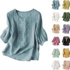 Camisetas Manga Corta con Botones Lino y Algodón para Mujer, Informal, Estilo Bohemio,Primavera Verano Suelto Blusas y Camisas Original Fiesta Tops T-Shirt tee Camiseta Ligero con Cuello en V