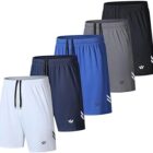 Paquete de 5 pantalones cortos deportivos para hombre con bolsillos y cintura elástica, pantalones cortos de entrenamiento de secado rápido, pantalones de correr