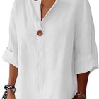 Camiseta Mujer Manga Larga Algodón y Lino Basicas Blusas Verano Botones Suelto Camiseta Cuello V Casual Básica T Shirts