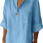 Camiseta Mujer Manga Larga Algodón y Lino Basicas Blusas Verano Botones Suelto Camiseta Cuello V Casual Básica T Shirts