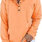 Women’s Casual Solid Color Long Sleeve Hoodie with Female Buttons and Drawstring Pockets Hoodies Men Pullover Women White Jacket with Shearling Women