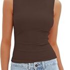 Camisetas Basicas Mujer Elegantes Camisetas sin Mangas Verano Cuello Redondo Top Camisetas Básica Blusas Mujer Slim Fit Tshirt