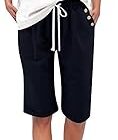 Pantalones Holgados hasta la Rodilla para Mujer, Informales, de Pierna Ancha y Cintura elástica para Entrenamiento. Shorts Mujer Azul