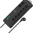 Brennenstuhl Premium-Line Duo regleta enchufes de 8 tomas con protección contra sobretensiones (cable de 3 m, interruptor, protección hasta 60.000 A, Fabricado en Alemania) negro