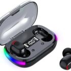 Auriculares inalámbricos Bluetooth 5.3. AI-007 Auriculares Bluetooth 5.3 Micrófono HiFi Estéreo Pantalla LED, Reducción de Ruido, Control táctil, IPX7 Impermeable Cascos Negros