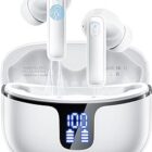 Renimer Auriculares Inalámbricos Bluetooth 5.3 con 4 HD Mic, 40H HiFi Estéreo Cascos Inalámbricos Bluetooth con Pantalla LED, Reducción de Ruido, 14.2 mm Controlador Dinámico, IP7 Impermeable(Blanco)