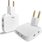 2x Ladron Enchufes Plano | Enchufe Plano Pared Extraplano con 3 Tomas y Cabezal Giratorio 180º | Adaptador EU – US | Enchufe Multiple para Espacios Difíciles de Alcanzar con 250V y Toma Tierra 16A