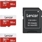 Lexar Paquete de 2 tarjetas micro SD de 32 GB, tarjeta de memoria flash microSDHC UHS-I con adaptador, hasta 100 MB/s, U1, Class10, V10, A1, tarjeta TF de alta velocidad (2 tarjetas microSD + 1