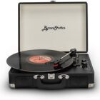 ByronStatics Tocadiscos Vinilo – Reproductor discos vinilo Bluetooth, 3 velocidades, altavoces estéreo integrados, aguja repuesto, salida línea RCA, entrada AUX, maleta portátil vintage (Negro)