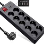 Regleta Enchufes 10 Tomas,Regleta de enchufes Proteccion sobretension,Múltiples Regletas con 4 USB-C,Regleta enchufes USB con Regleta Oficina 1.5m Cable,1000 J,4000W/16A,3.4A Negro