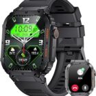 LIGE Smartwatch Hombre Militar con Llamadas,Batería de 400 mAh Smartwatch con Monitor de sueño Frecuencia Cardíaca, SpO2,100+ Modos Deportivos Reloj Inteligente Hombre para iPhone Android Negro