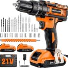 AKZWOXRO Taladro Percutor a Bateria 21V, Taladro Atornillador Bateria con 2×2.0Ah Baterías, Atornillador Electrico 42Nm, 25+3 Ajuste de Par, 30 Accesorios, 2 Velocidad, LED Luz Para Hogar, Bricolaje