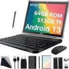 2023 Nueva Tablet 10 Pulgadas,Android 4G LTE +WiFi Tablets con 2 SIM 1 SD,2 en 1 Tableta PC con teclado y ratón-64GB ROM 512GB TF Octa-Core, Batería 6000mAh,13MP+5MP,1080 FHD IPS,Bluetooth-Negro