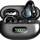 Auriculares con Clip Bluetooth 5.3, Auriculares Deportivos con Micrófono Incorporado con Gancho de Oreja, Caja de Carga Inalámbrica y Pantalla de Visualización, Auriculares Impermeables para Correr