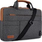 DOMISO 14 Pulgadas Funda Protectora con Puerto de Carga USB Bolsa Bandolera Maletin para Ordenador Portátil/Apple/HP Stream 14 Pavilion 14 / Acer Aspire 1 Swift 3 / Lenovo/Asus, Gris Oscuro