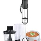 TM Electron TMPBA017 batidora de mano con 1200W de potencia, acero inoxidable y empuñadura ergonómica antideslizante, incluye vaso graduado de 600ml, varillas metálicas y picador de 500ml con tapa