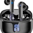 Auriculares Inalámbricos Bluetooth, Auriculares Bluetooth 5.3 con 4 HD Reducción de Ruido ENC Mics, 40 Horas Cascos Inalambricos HiFi Estéreo, IP7 Impermeable con LED Pantalla, USB-C, Negro
