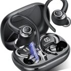 Jesebang Auriculares Inalámbricos Deportivos, Auriculares Bluetooth 5.3 con HD Micrófono, Sonido Premium, 40H de Reproducción, Pantalla LED, Cómodos de Llevar, Cascos Inalambricos con Gancho, Negro