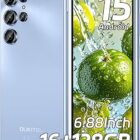 OUKITEL C61 Mobile Phones Android 15, 16GB(4+12)+128GB/1TB Smartphone, 6.88" HD+ 90Hz Mobile Phone, 5150mAh Mobile Battery, 4G Dual SIM/Face ID/Fingerprint/GPS/OTG, Blue