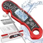 POWSAF Termometro Cocina, Termómetro Carne Digital, Termometro Horno de Lectura Instantánea Ultrarrápida, Resistente al Agua IPX6, con Sonda Larga Plegable y Pantalla LCD, Color Rojo