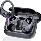 Auriculares Inalambricos, Auriculares Bluetooth 5.3 Deportivos con Gancho de la Oreja, 60H de Reproducción, Pantalla LED, Llamada ENC HD, Profundamente Bajo, Ajuste Cómodo, IPX7 Impermeable(Negro).