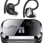 Auriculares Inalambricos Deportivos, 75H Cascos Bluetooth 5.4 HiFi Estéreo, Cascos Inalambricos Cancelacion Ruido ENC con Dual LED Pantalla, IPX8 Impermeable Auriculares Running con Gancho, Negro