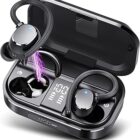 POMUIC Auriculares Inalámbricos Deportivos, 2023 Auriculares Bluetooth 5.3, 120H de Reproducción con Cancelacion Ruido ENC, Auriculares Inalambricos IPX7 Impermeable, Carga Rápida USB-C Pantalla LED