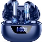 Auriculares Inalambricos, Auriculares Bluetooth 5.3 con Reducción de Ruido ENC Mic, 48 Horas Reproducción Cascos Inalámbricos Sonido Estéreo, IP7 Impermeable Audifonos Inalambricos, Pantalla LED, Azul