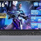 portátil de 16 Pulgadas, Ordenador portátil con procesador N150 (hasta 3,4 GHz), 16 GB RAM 1 TB SSD, Win 11 Laptop,1920 x 1200 FHD Notebook, con Teclado retroiluminado, 6000 mAh,WiFi5