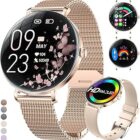 LIGE 2025 Smartwatch Mujer 1.43" HD AMOLED Circular Pantalla Arco Oro Rosa Reloj de Pulsera para Mujeres con Podómetro Función Teléfono, IP68 Impermeable 120+ Modos Deportivos Reloj Deportivo para