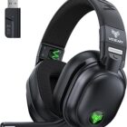 WESEARY WG3 Cascos Gaming Inalambricos, Auriculares Gaming Inalambricos para PS5, PS4, PC, Switch, Sonido Estéreo Auriculares con Microfono, Cascos con Luz LED, Duración 50Hr+